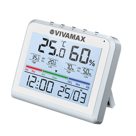 Ellenőrizze rendszeresen otthona páratartalmát! Előzze meg a légúti megbetegedéseket, alakítson ki megfelelő környezetet a gyorsabb felépüléshez optimális páratartalom biztosításával! A készülék nagyméretű, LED háttérvilágítással is használható kijelzőjén könnyedén nyomon követheti a helyiség aktuális hőmérsékletét, páratartalmát és a pontos időt. A színes komfortfokozat kijelző pedig segít, hogy mindig időben reagálhasson, ha kibillen a tökéletes egyensúly!